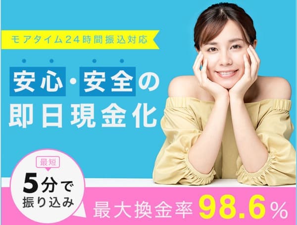 最大98.4%の換金率と、最短5分でのスピーディーな入金対応で、急な資金ニーズにも対応します。